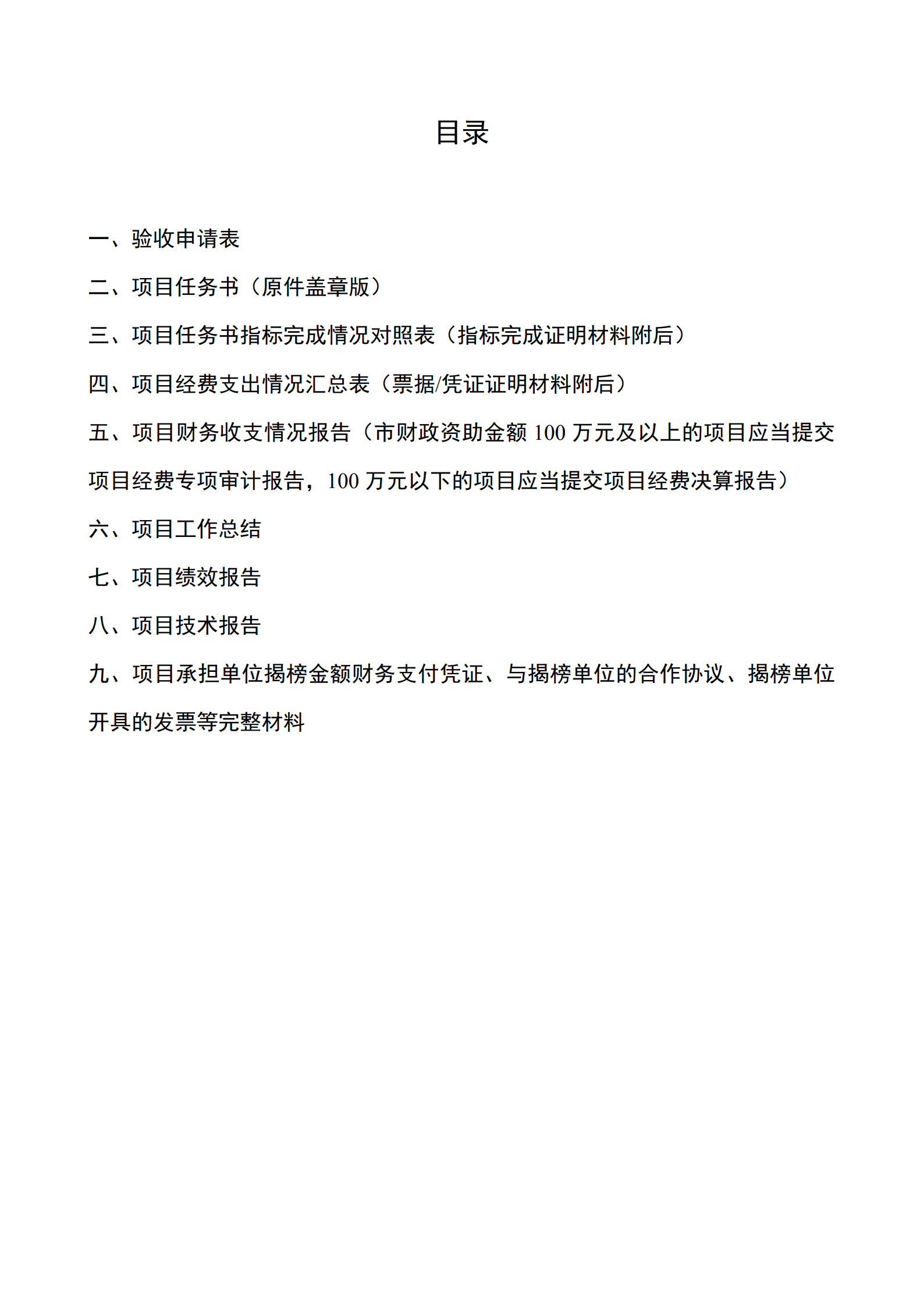 (一)项目发榜单位须提交以下验收材料,且对揭榜单位提供材料的真实性负责,详见附件2。