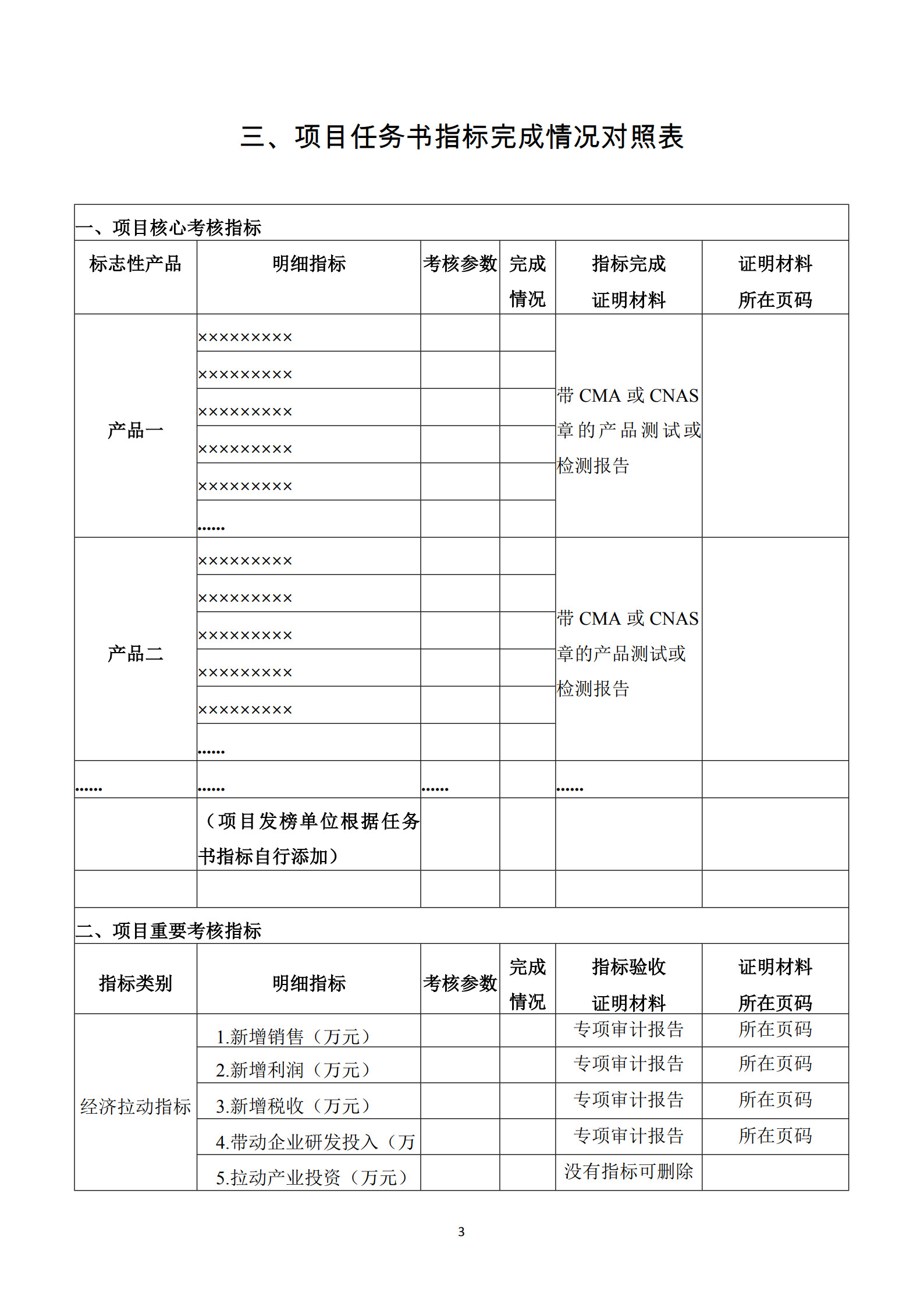3.项目任务书指标完成情况对照表(指标完成证明材料附后);
