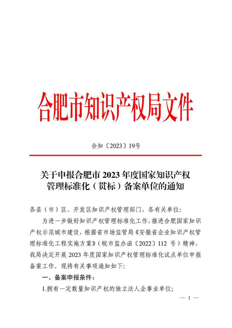 上一篇:转发合肥市经济和信息化局关于组织开展国家2023年度绿色制造名单推荐工作的通知 下一篇:转发高新区技术开发管理委员会关于公布2023年合肥高新区知识产权项目备案结果的通知